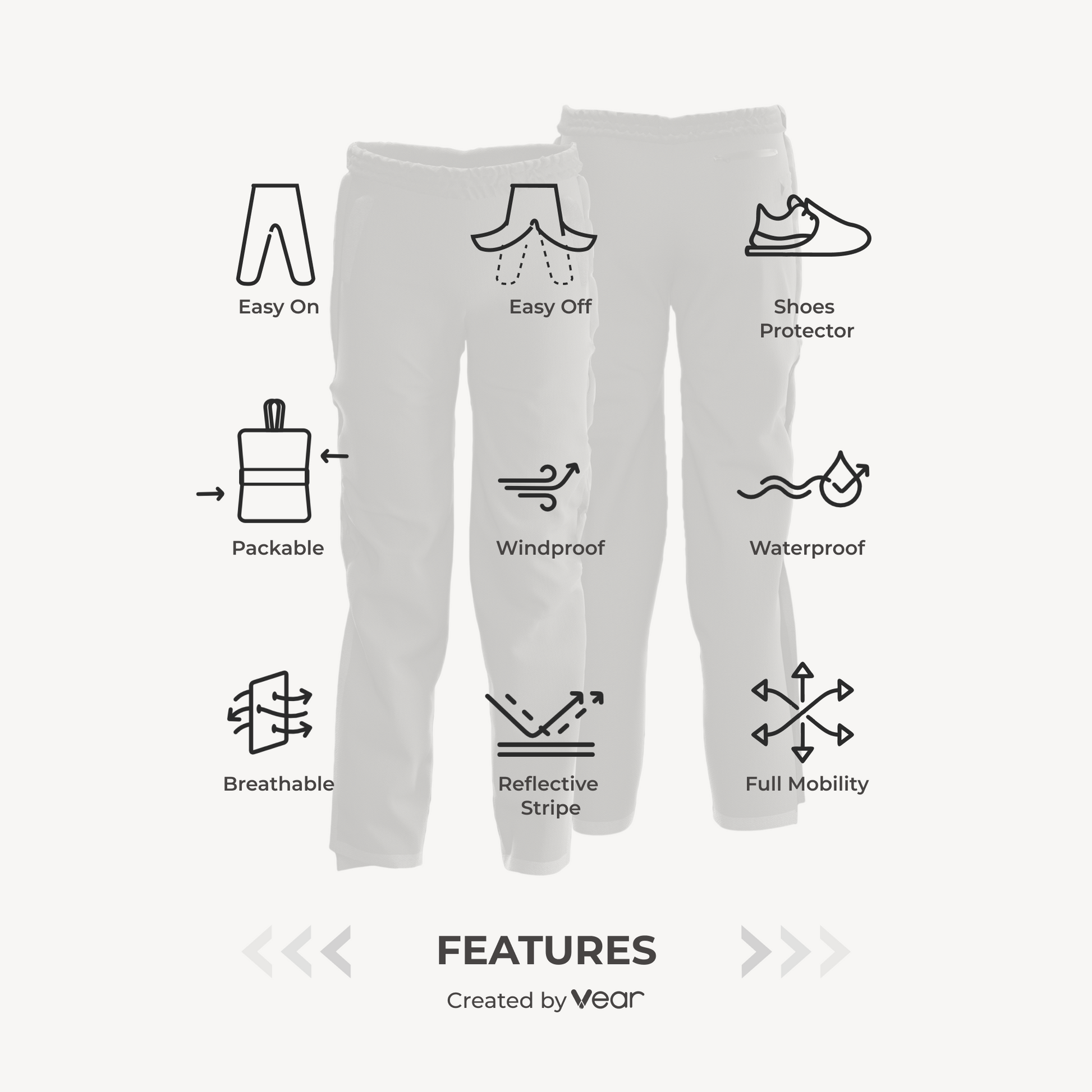 Gear up for unparalleled convenience and comfort with the VEAR Pants—a revolutionary solution for outdoor enthusiasts. Engineered with a patented zipper for effortless wear and removal, these pants redefine ease in your adventures. Don't let unpredictable weather dampen your spirit; embrace the outdoors with VEAR.